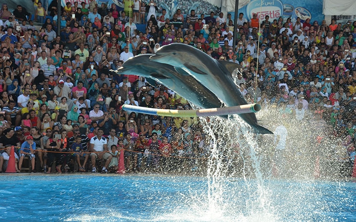 Delfíni patří mezi nejchytřejší mořské savce. Právě proto je představení delfínů nejen zábavné, ale také poučné. V průběhu programu můžete pozorovat jejich komunikaci, hravost i schopnost spolupráce.