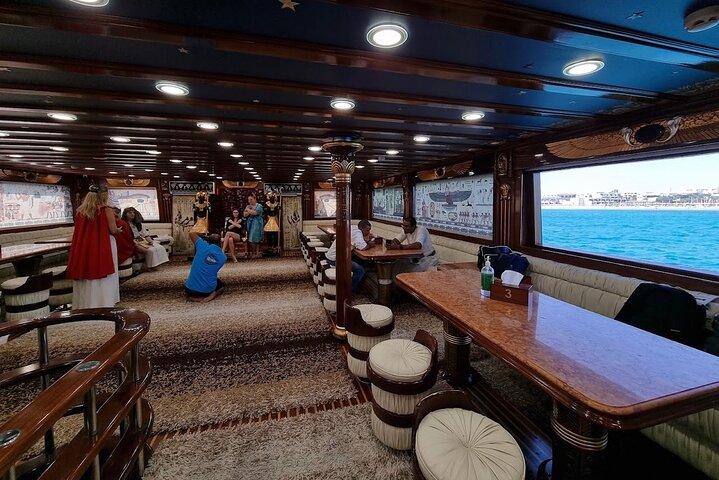 Výlet začíná transferem z hotelu do přístavu Port Ghalib, kde se nalodíte na elegantní loď Nefertari. Po vyplutí z přístavu zamíří loď ke korálovému útesu, kde strávíte přibližně jednu hodinu pozorováním podmořského života z podpalubí. Díky panoramatickým oknům můžete obdivovat barevné korály, tropické ryby i další mořské živočichy, aniž byste museli vstoupit do vody.