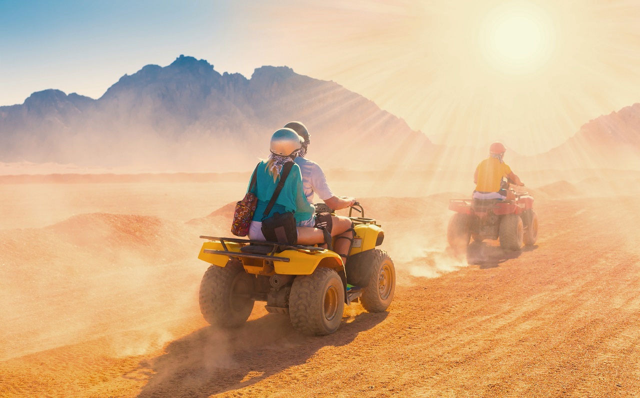 • Preskúmajte egyptskú púšť vzrušujúcou jazdou na štvorkolkách. Navštívte beduínsku dedinu, Zoznámte sa s miestnou kultúrou a povozte sa na ťavách.