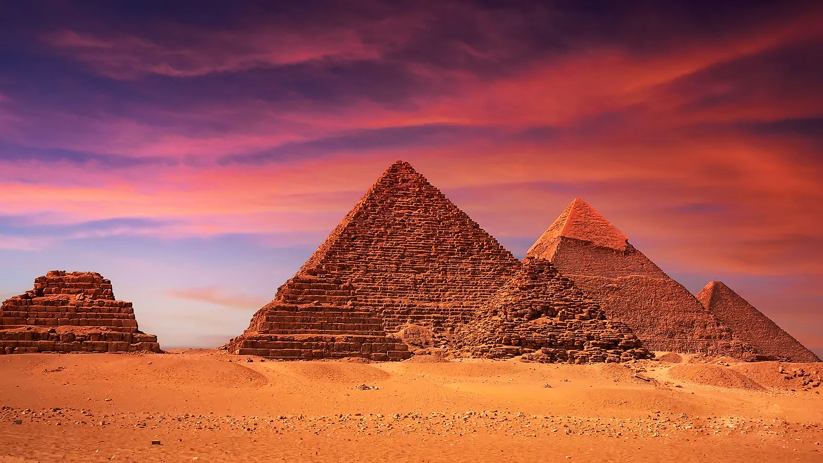 1. den: Odjezd z hotelu v brzkých ranních hodinách. Cesta do Káhiry trvá asi 5 hodin. Program začíná prohlídkou Sakkary, návštěva Džoserovy pyramidy, Tetiho pyramidy, hrobky Kadzemni, návštěva výrobny ručních koberců a školy ve vesnici Sakkara. Následně pojedeme na jih, kde vás může fascinovat lomená Snofrunova pyramida, Červená pyramida a Bentova pyramida v Dahshuru. Oběd bude v restauraci formou bufetu. Po obědě se vydáme do Gízy a navštívíme zde jeden ze „sedmi divů světa“ – pyramidy Cheopsovu, Chephrenovu a Mykerinovu, poté se podíváme na slavnou sochu Sfingy. Posledním bodem programu bude návštěva továrny na parfémy, kde si budete moci zakoupit vybrané egyptské parfémy. Ubytování ve 4* hotelu.