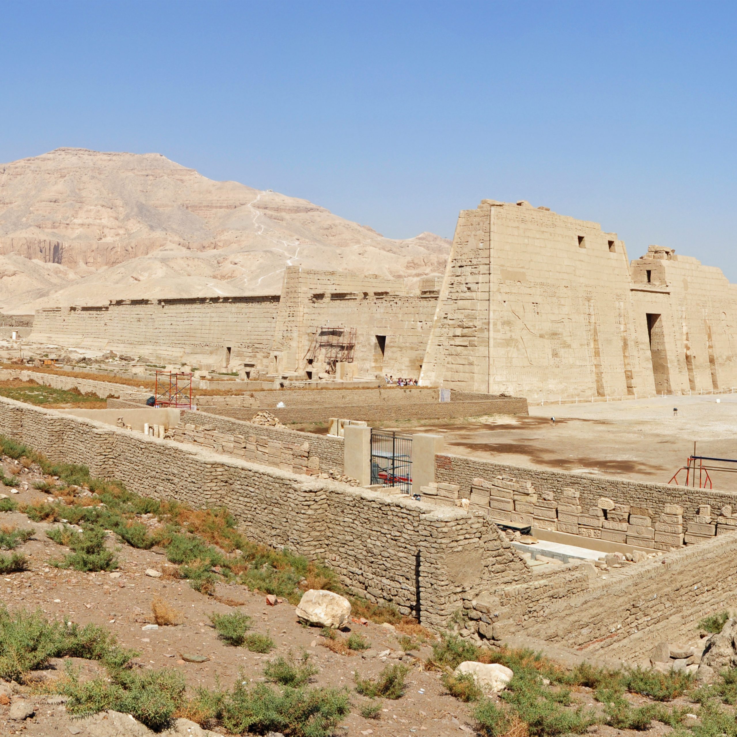 Naše prohlídka začne v impozantním chrámu Medinet Habu, zádušním chrámu faraona Ramesse III. Tento komplex patří k nejlépe dochovaným chrámům v Egyptě a je proslulý detailními reliéfy zobrazujícími vítězství nad mořskými národy, náboženské rituály i každodenní život starověkých Egypťanů.