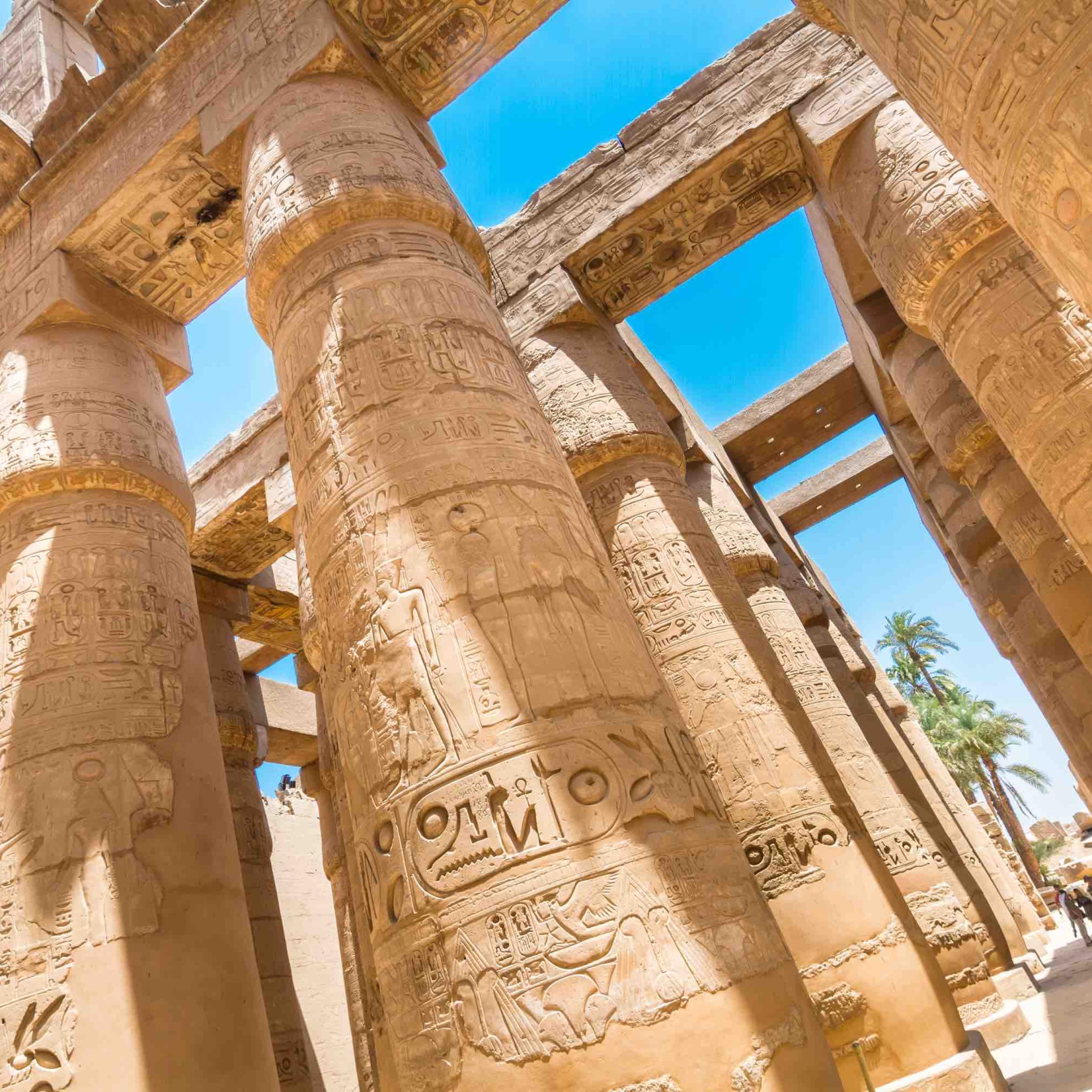 Navštívíme Karnak, impozantní chrámový komplex s monumentálními sloupy, obelisky a posvátnými sochami, který představuje sílu a bohatství starověkého Egypta.